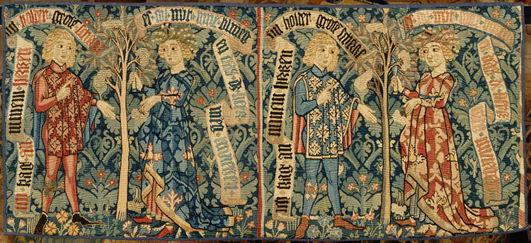 Les amoureux sont figurés en conversation, comme le montrent les banderoles. On remarque la stylisation, en particulier dans le tissage des motifs des vêtements, où tout réalisme de modelé est banni. Ce souci est renforcé par une gestuelle symbolique : la dame coupe des branches de sureau pour guérir son soupirant ensorcelé. L'œuvre témoigne ainsi de la diffusion des thèmes courtois dans l'ameublement.