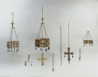 Le musée de Cluny conserve une partie des couronnes wisigothiques découvertes à Guarrazar, près de Tolède au 19e siècle (entre 1858 et 1860).