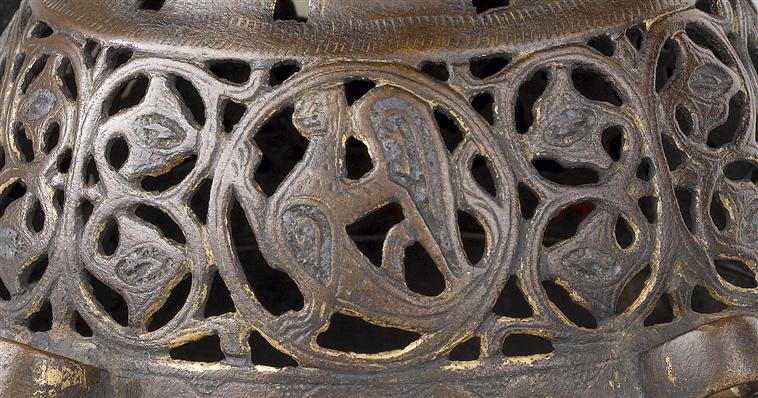 Comme d'autres encensoirs provenant de la région limousone, celui-ci a la particularité de présenter une coupe supérieure ajourée de plusieurs registres en forme d’entrée de serrure.
