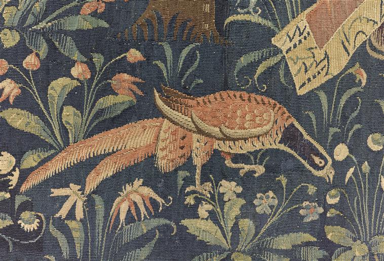 Cette tapisserie est une des pièces de la tenture de la Vie seigneuriale (Cl. 2178 à Cl. 2183), consacrée aux activités et aux loisirs de l’aristocratie. Elle témoigne de la broderie domestique.
